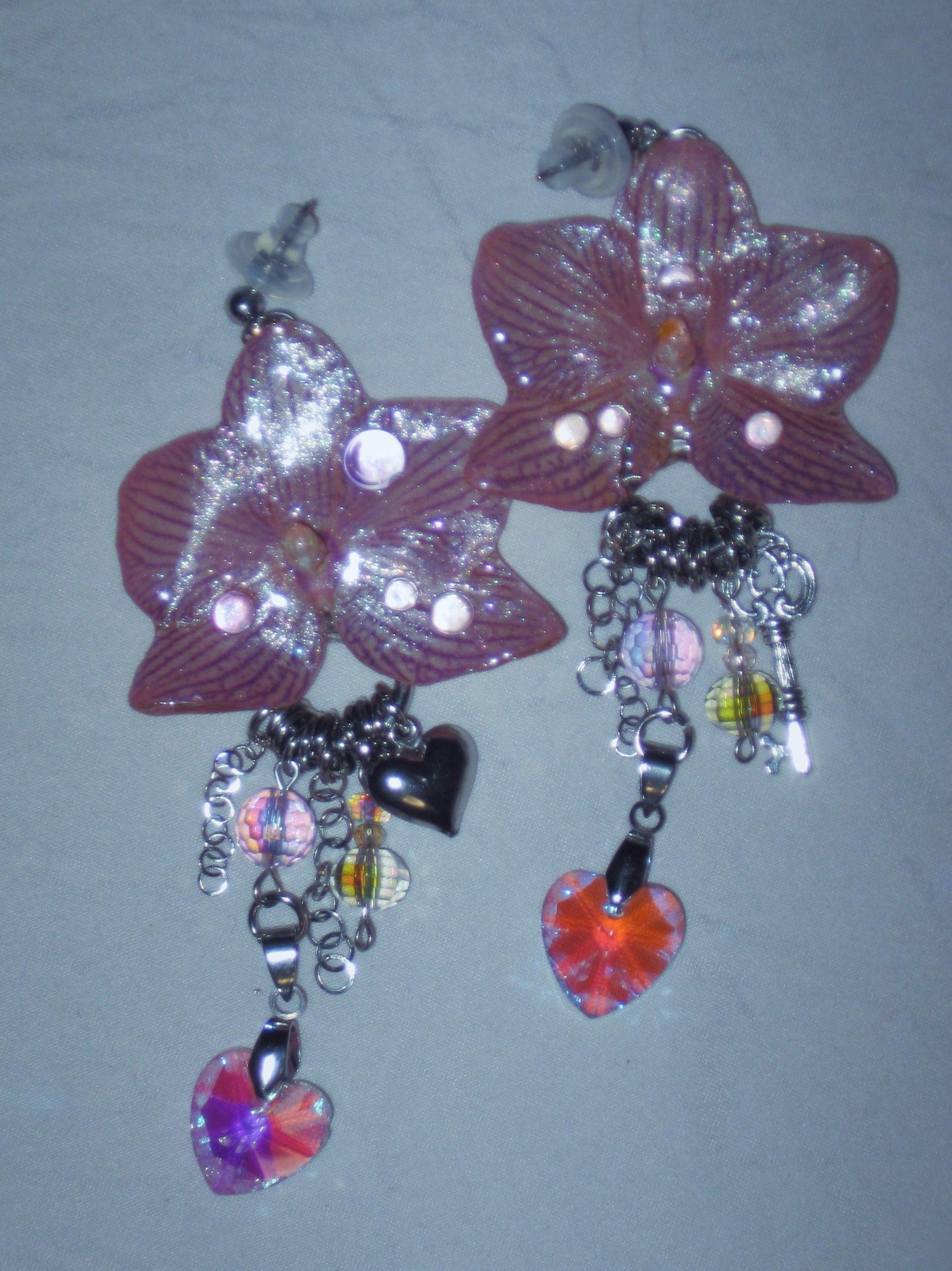 real orchid flower earrings surrounded by glass. all stainless steel hardware.